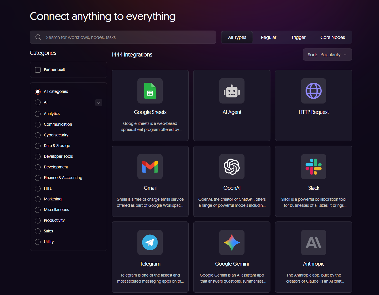 n8n 연결 가능 서비스 목록